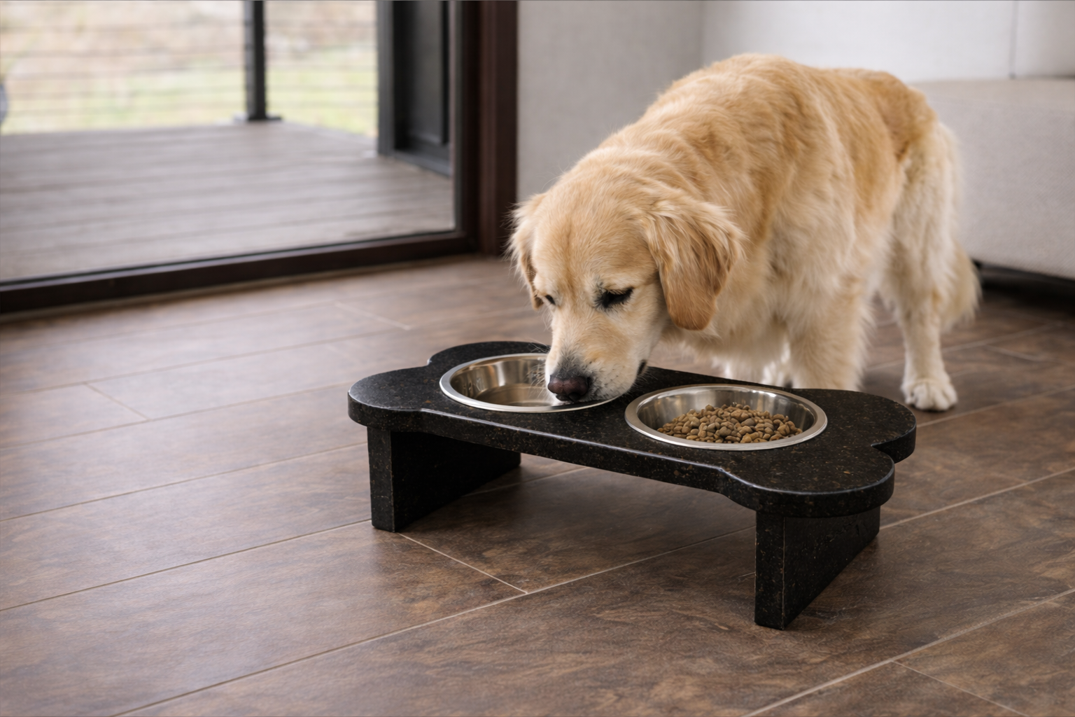 Each bowl features a solid stone base paired with a removable, food-grade stainless steel bowl.